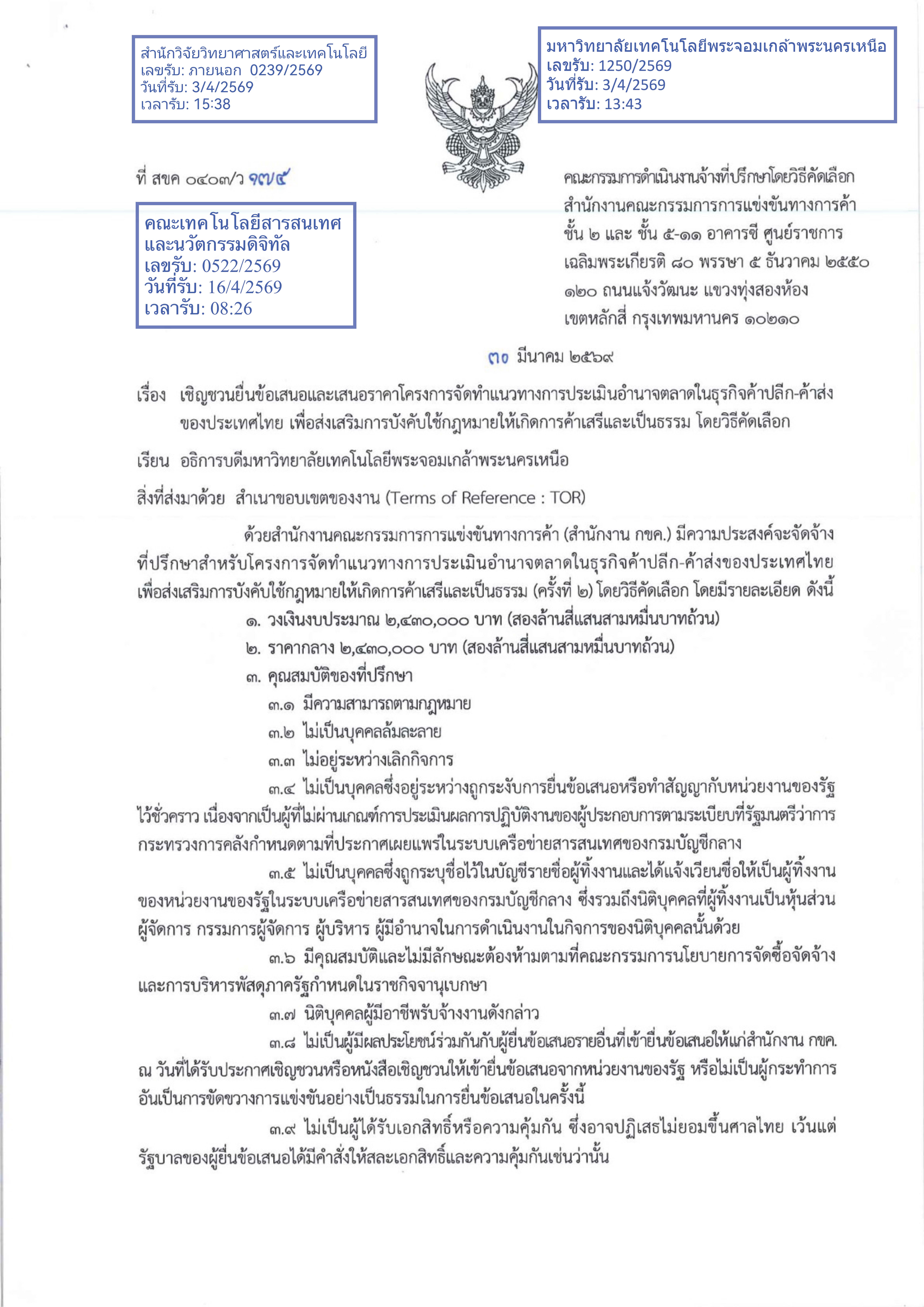 เรียน อธิการบดีมหาวิทยาลัยเทคโนโลยีพระจอมเกล้าพระนครเหนือ