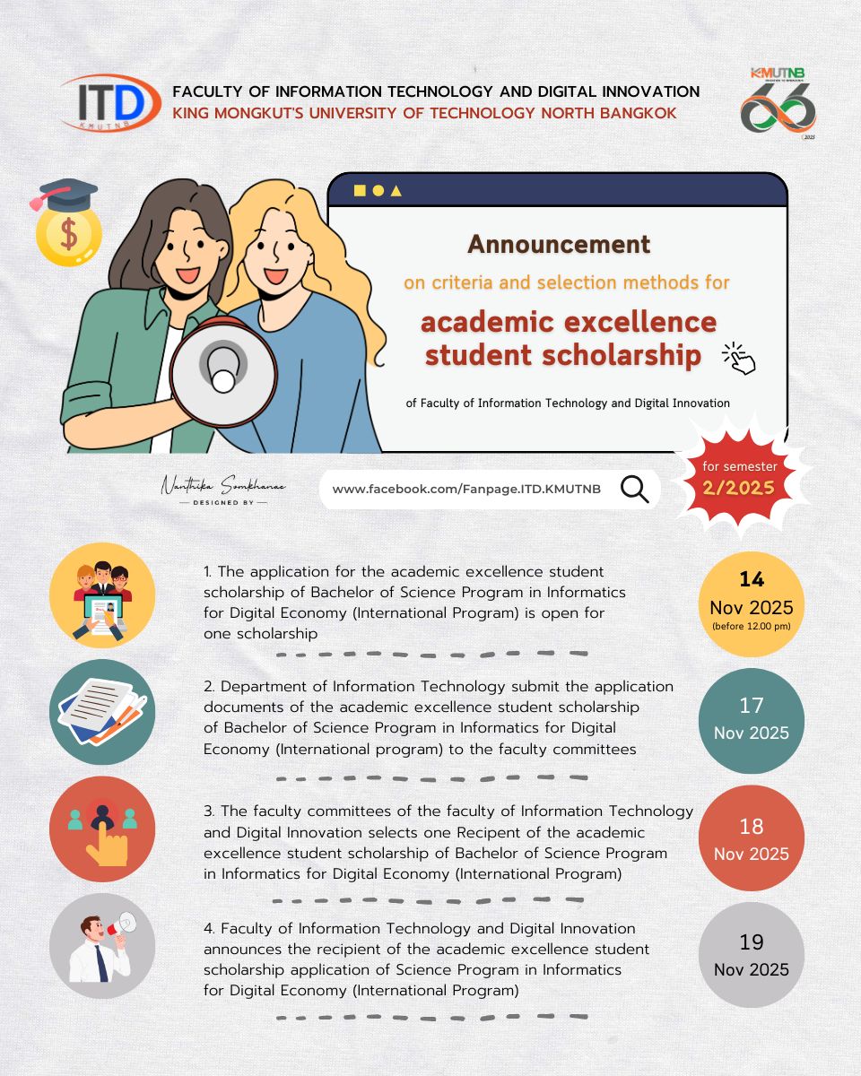 The application for the academic excellence student scholarship of Bachelor of Science Program in Informatics for Digital Economy (International Program) is open for one scholarship